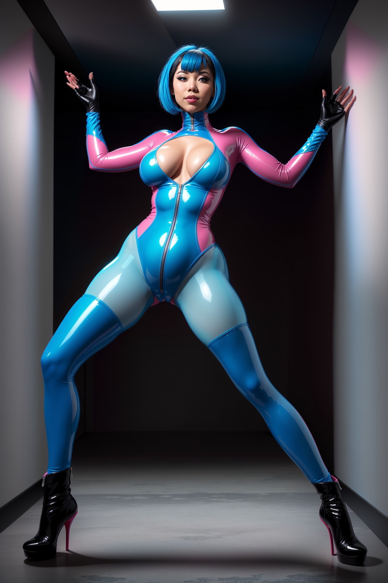 - Topic: Booty girl in Shiny blue bodysuit