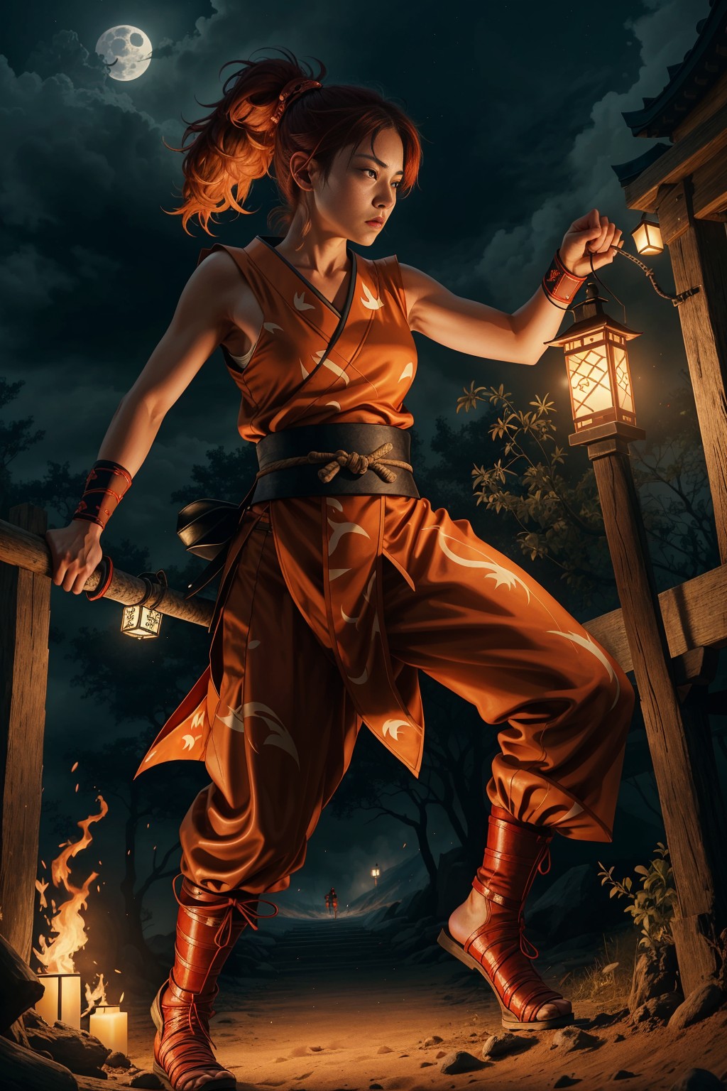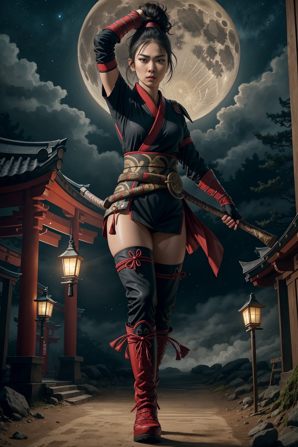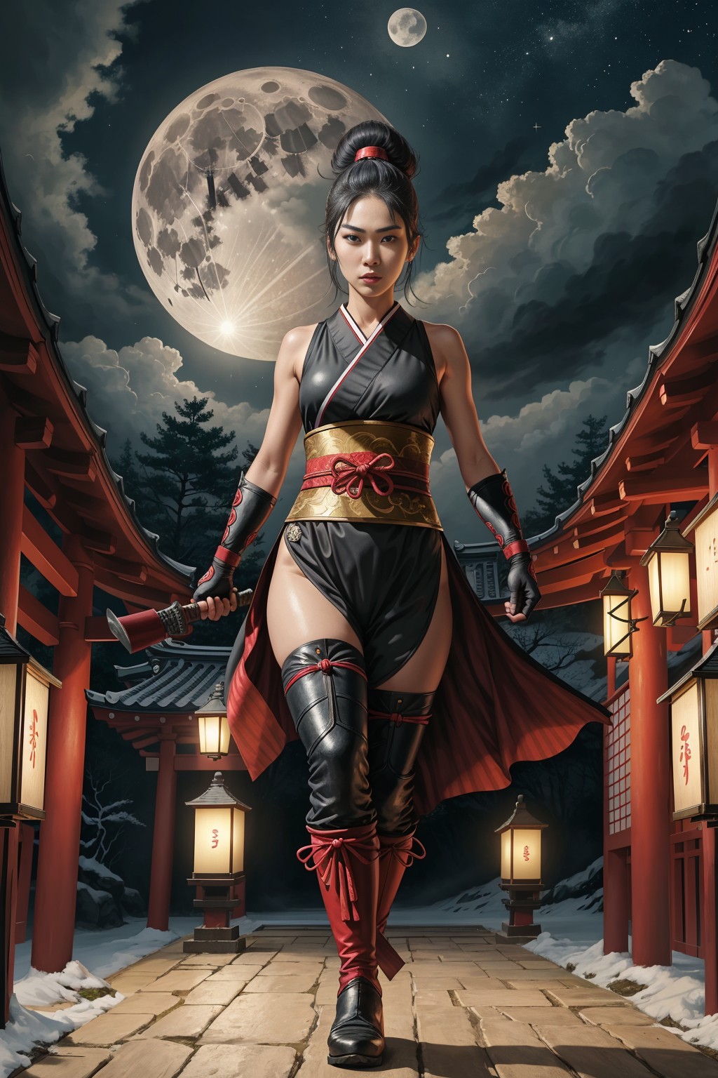 Ninja girl at full mon night