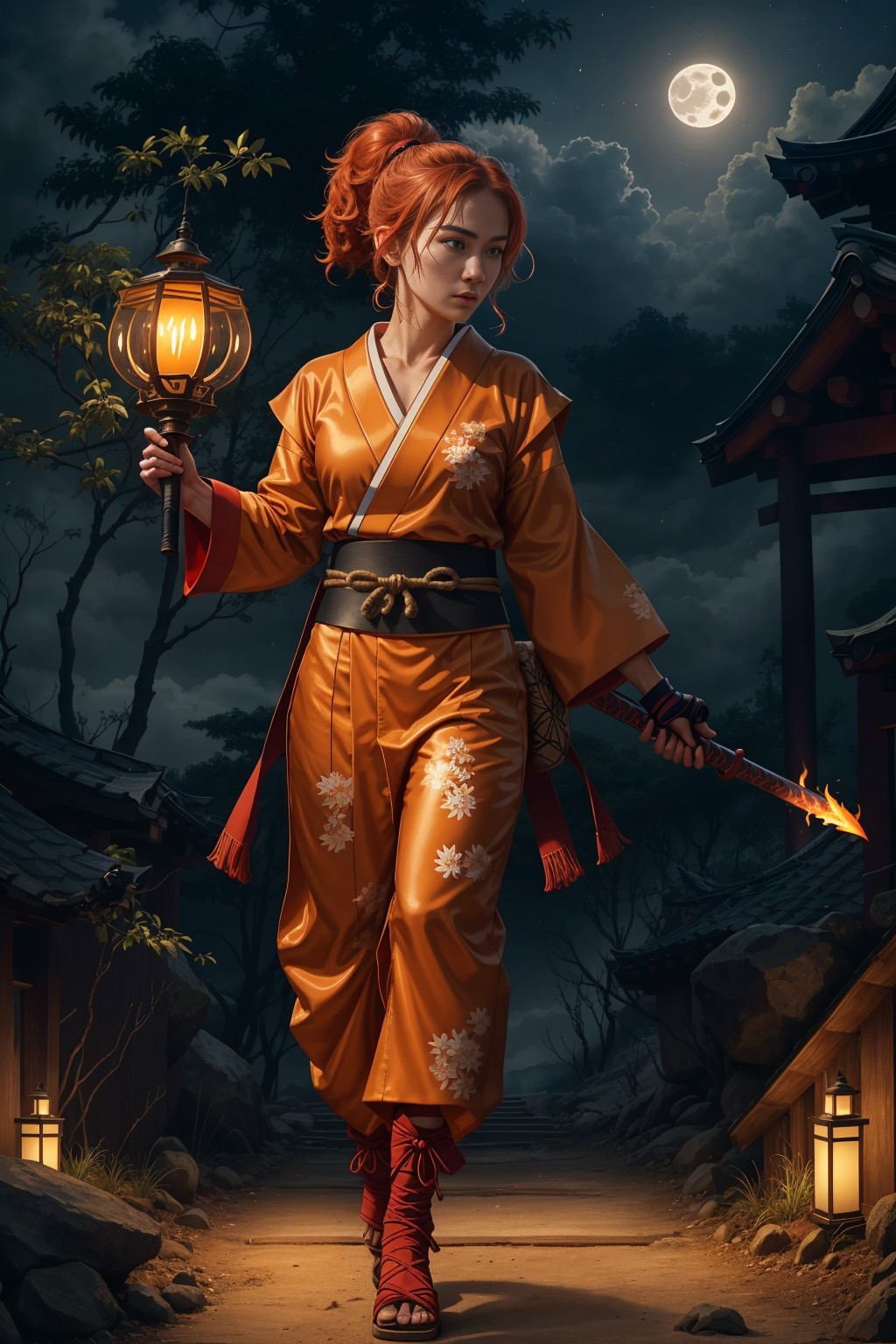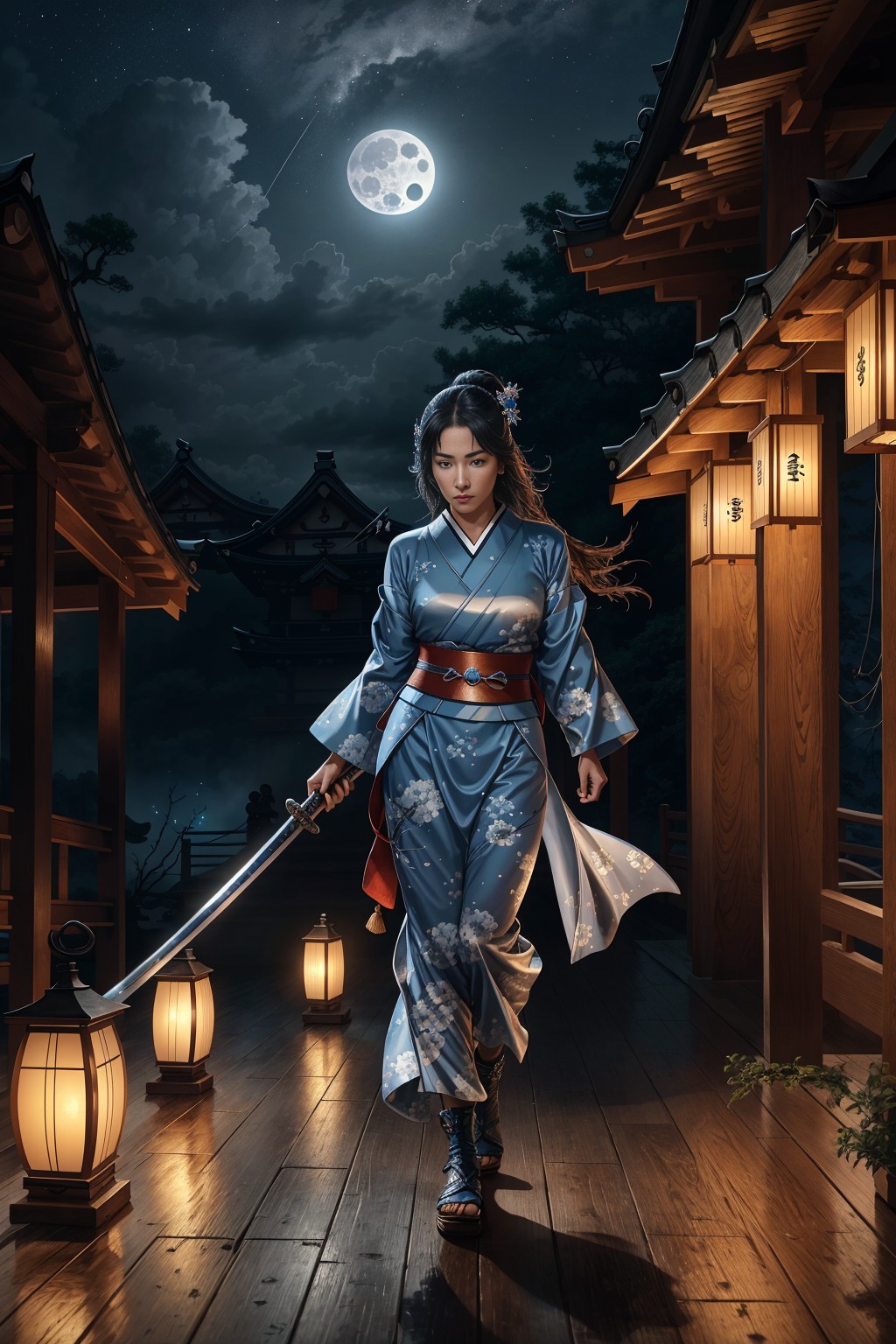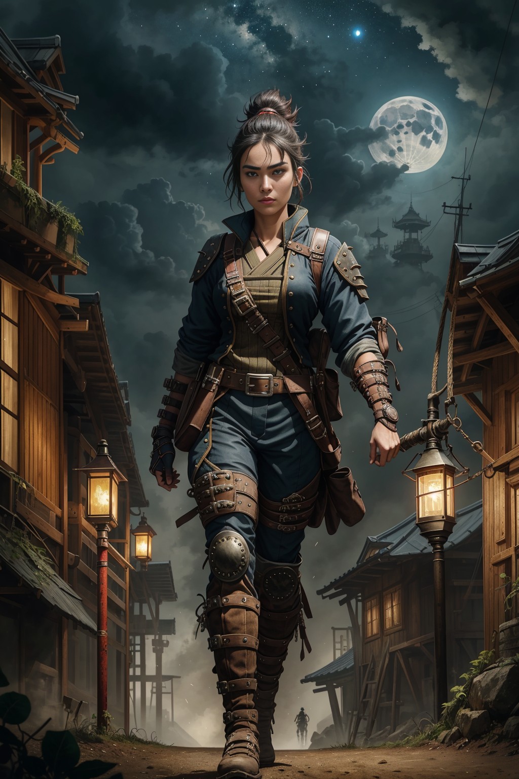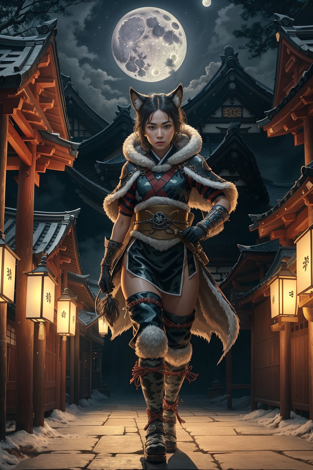 Ninja girl at full mon night