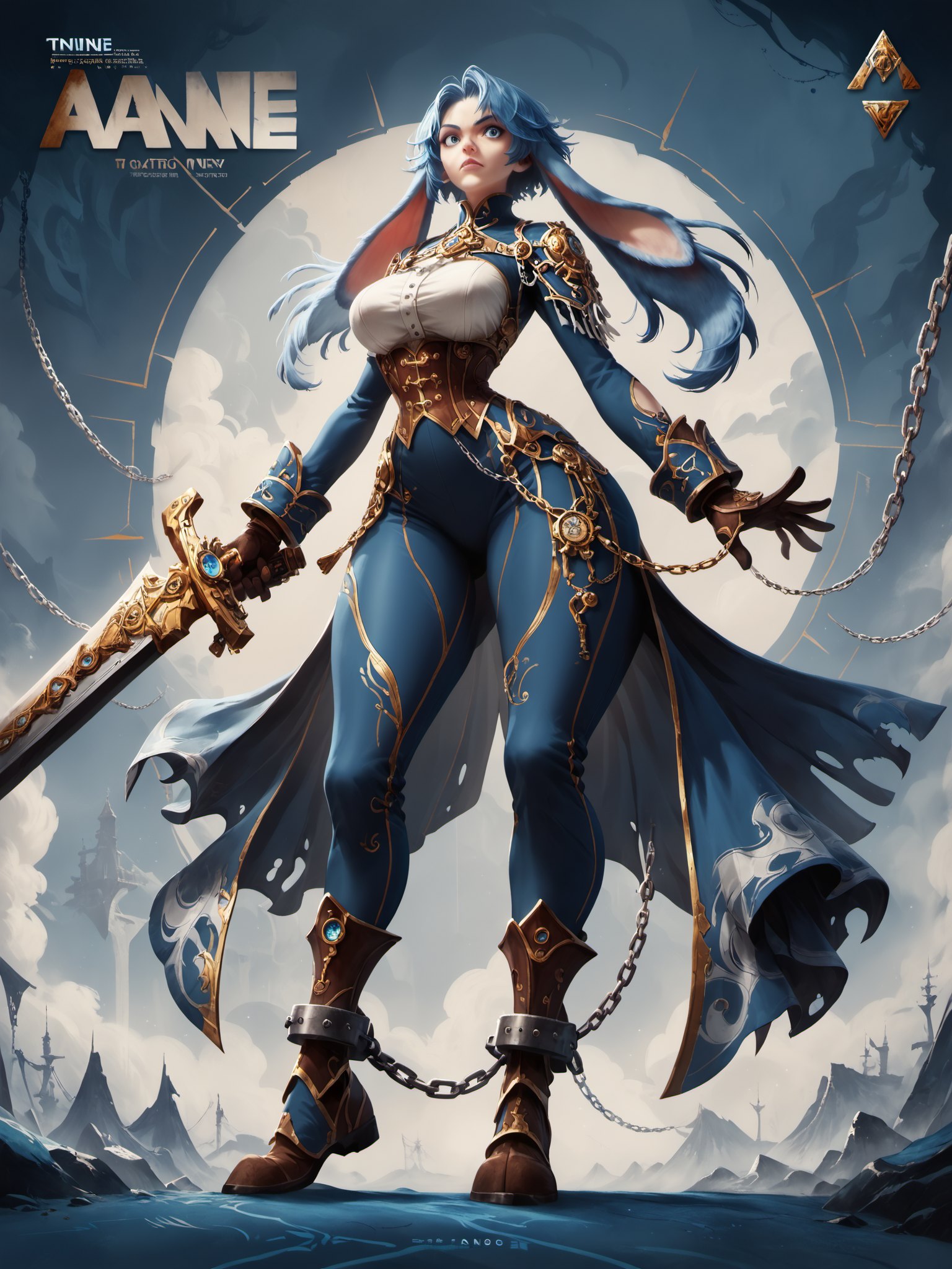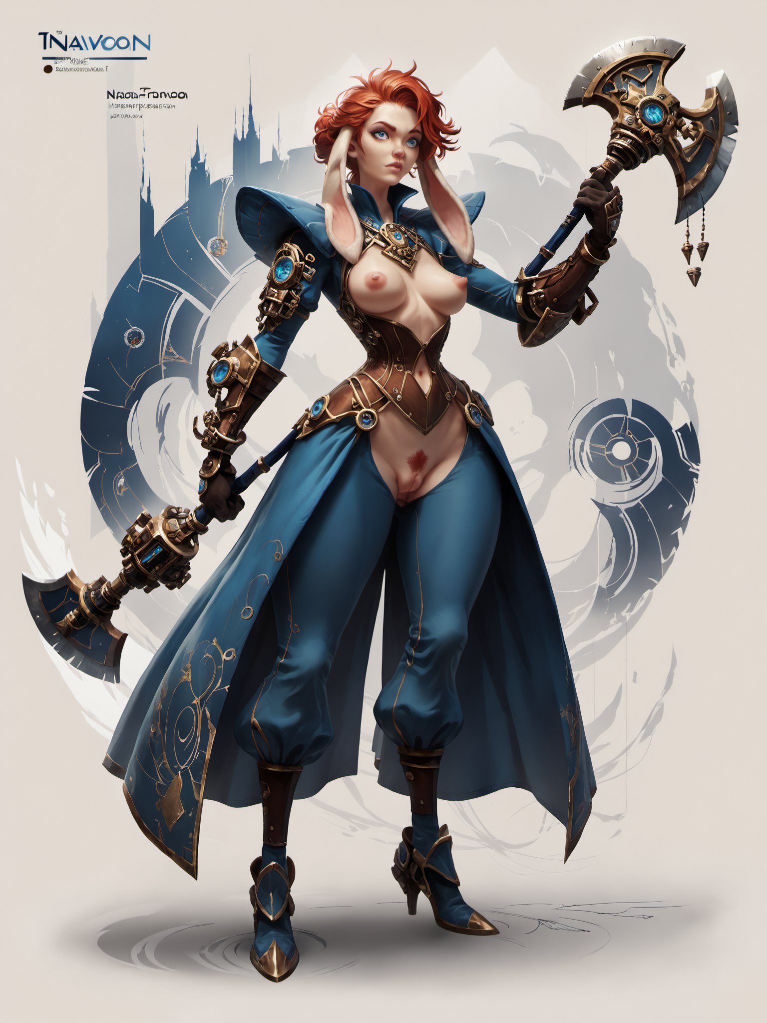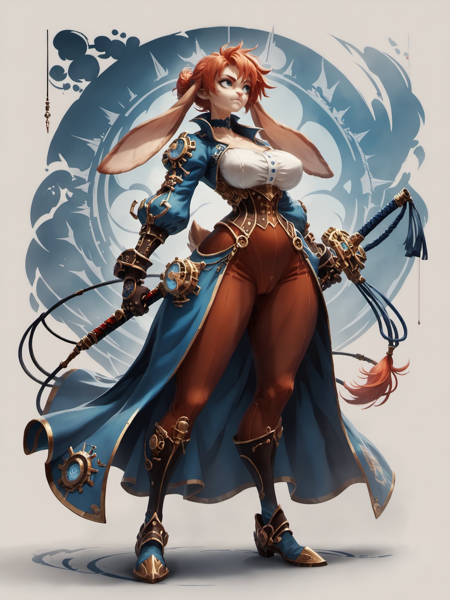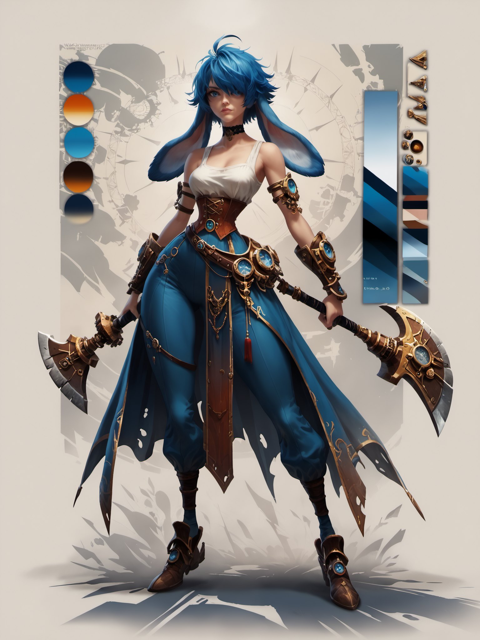 score_9, score_8_up, score_7_up, score_6_up, score_5_up, score_4_up, (full body:1.3), a woman with a big axe in her hand wearing steampunk clothes of costume with blue accents in wlop style and gil elvgren style, concept art, by Yang J, full body character concept art, game poster background, [ character design ], concept art feng zhu, made with anime painter studio, trending on concept art of female outfit, choker, medium breasts, narrow waist, waist belt, long legs, wide hip, bare thigh, thick thigh, dynamic pose, view from above, <lora:MJ52:0.8>, <lora:Concept Art Ultimatum Style LoRA_Pony XL v6:1> concept art, digital art