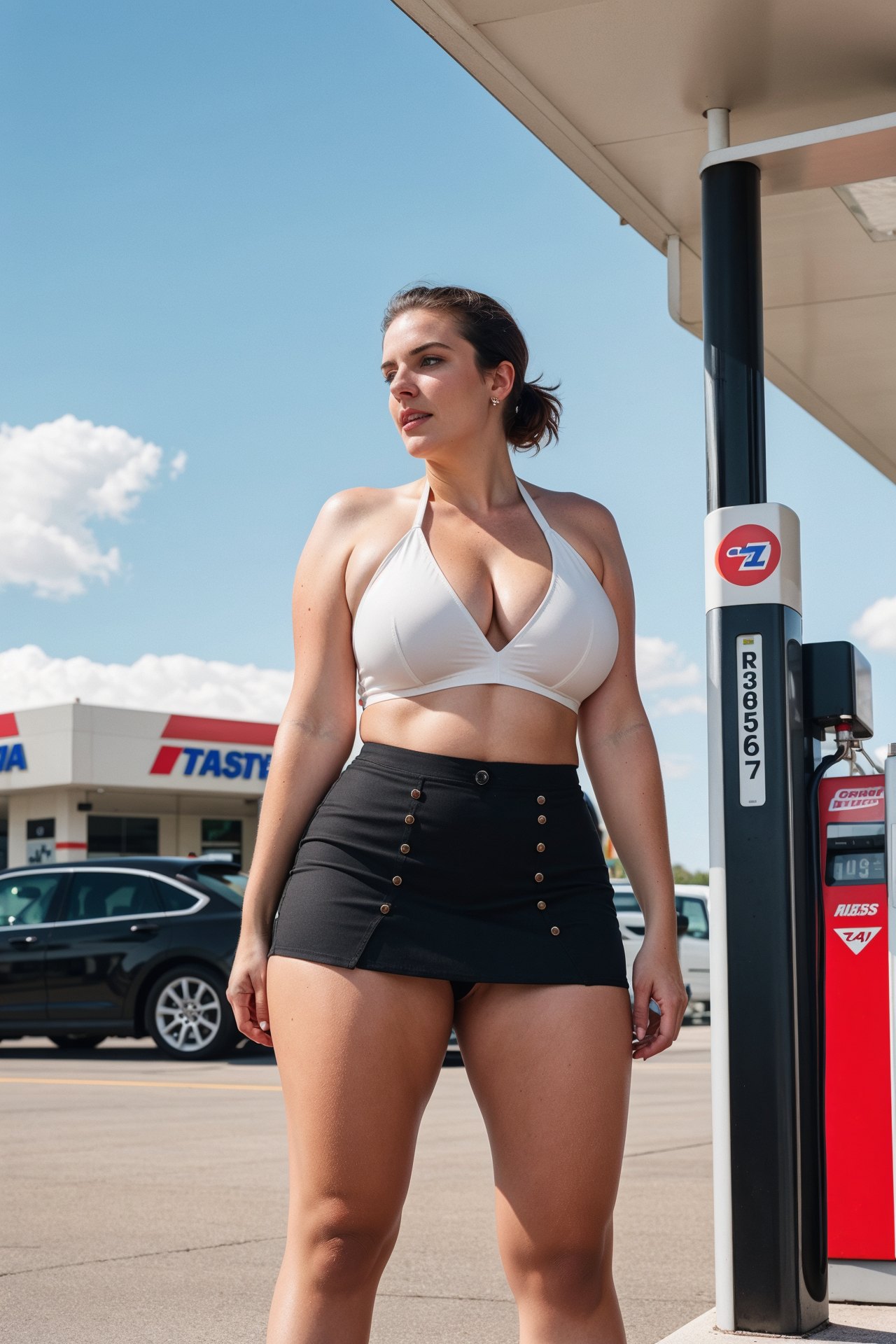 Steps: 28, Sampler: DPM++ 2M Karras, CFG scale: 7, Seed: 2132051067, Size: 512x768, Model hash: 62bb78983a, Model: epicphotogasm_lastUnicorn, Denoising strength: 0.48, Hires prompt: "nsfw, uncensored, 1girl, full body shot, {from behind, exposed butts|big breasts, cleavage}, wearing {tank top, short shirt|off-shoulder|bustier shirt|tight shirt|halter shirt}, {torn frayed denim micro short pants|short mini-skirt|short pencil skirt|pleated mini-skirt}, wide hips, thick thigh, white panties, {knee-high socks|thigh-highs|bare thigh}, {string tie sandals|high heels|knee-high boots}, a bag, standing in gas station, holding gas nozzle, standing next to car, sports car, suv, gas station, chevron, texaco, 76 gas station, 7-Eleven, gas pump, view from below, looking away", Hires upscale: 2.5, Hires upscaler: real_4x_NMKD-Siax_200k, Version: f0.0.16v1.8.0rc-latest-268-gb59deaa3