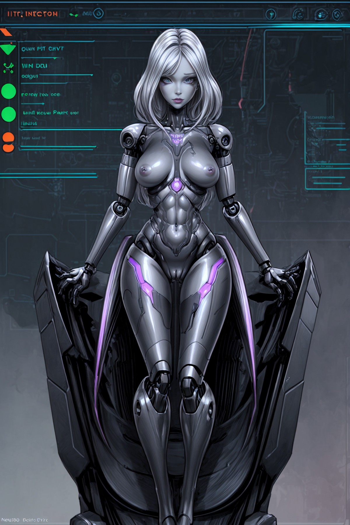 depict a cyborg female humanoid, sex robot, future world, sex humanoid, robotic arms and legs, pretty face, blonde, realistic breasts, realistic pussy, makeup, nsfw, uncensored, spreading legs, squatting, vaginal, riding sex machine, dildo machine, fucking machine, dildo inserted in pussy, white liquid oozing out of pussy, <lora:add_detail:1>