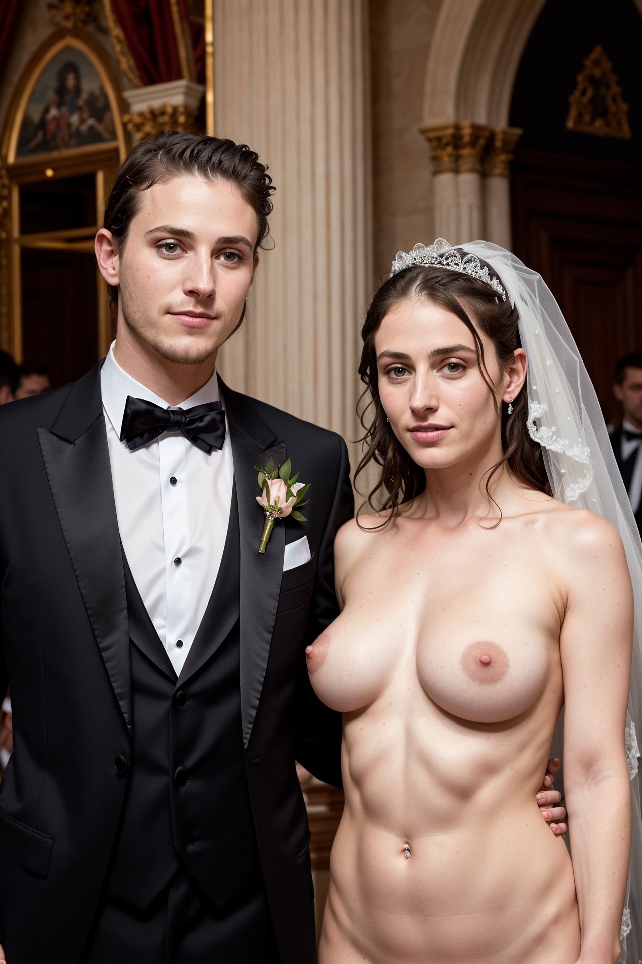 nsfw, full body, wedding picture, naked girl in veil on head, (naked:1.3) bride and groom in tuxedo, depth of field, (masterpiece:1.3), (best quality:1.3), extremely high details, absurdres, (photorealistic), realistic, hyper-detailed, ray-tracing, high resolution, sharp focus, 8k, vibrant, intricate, sharpness and clarity, lifelike, hyper_realism