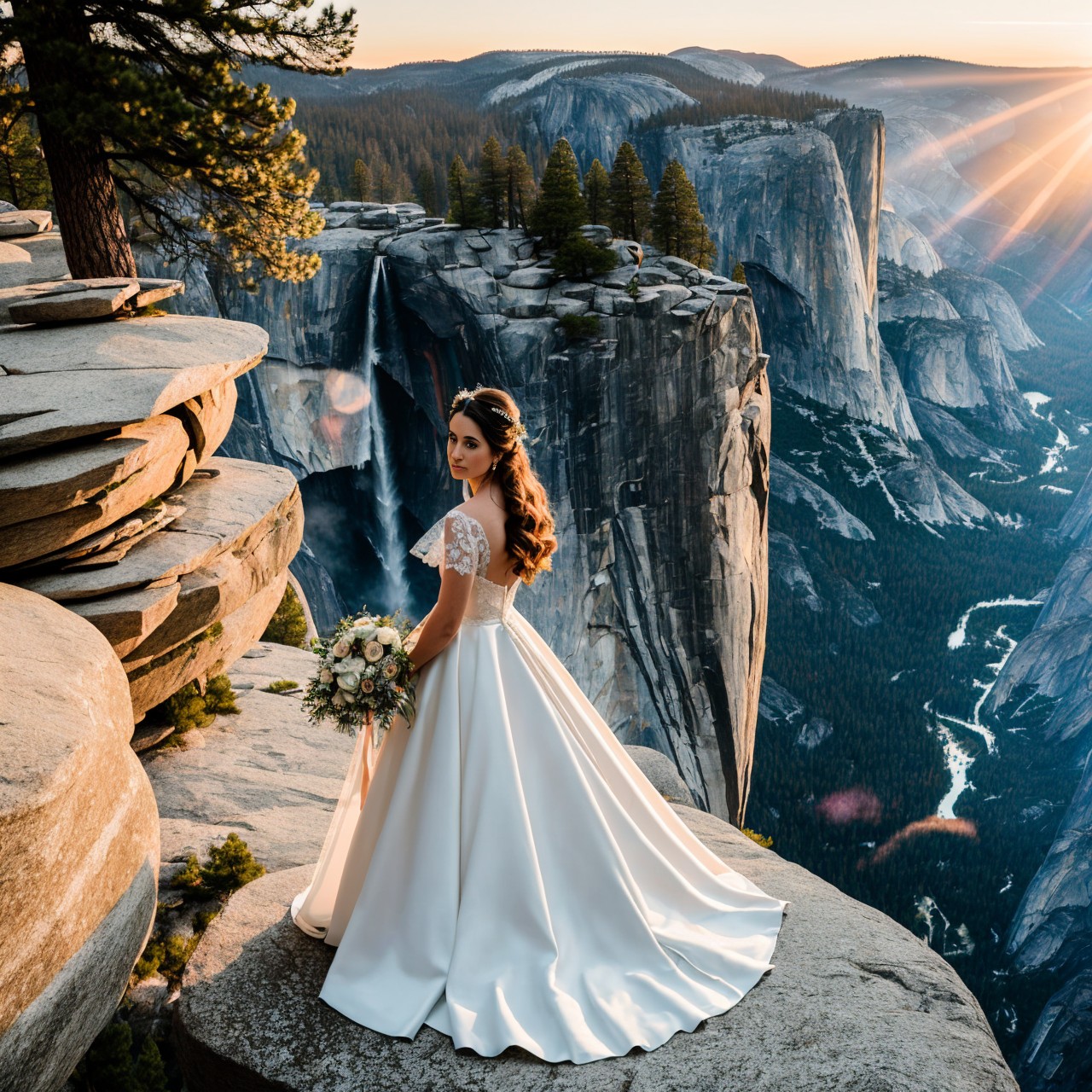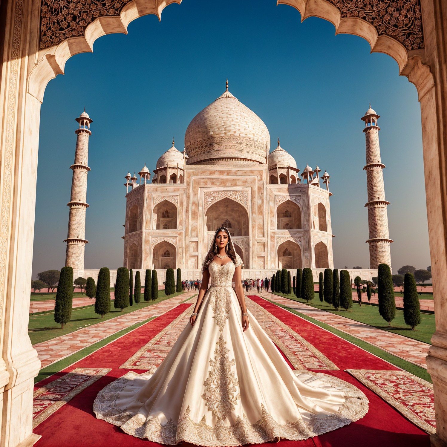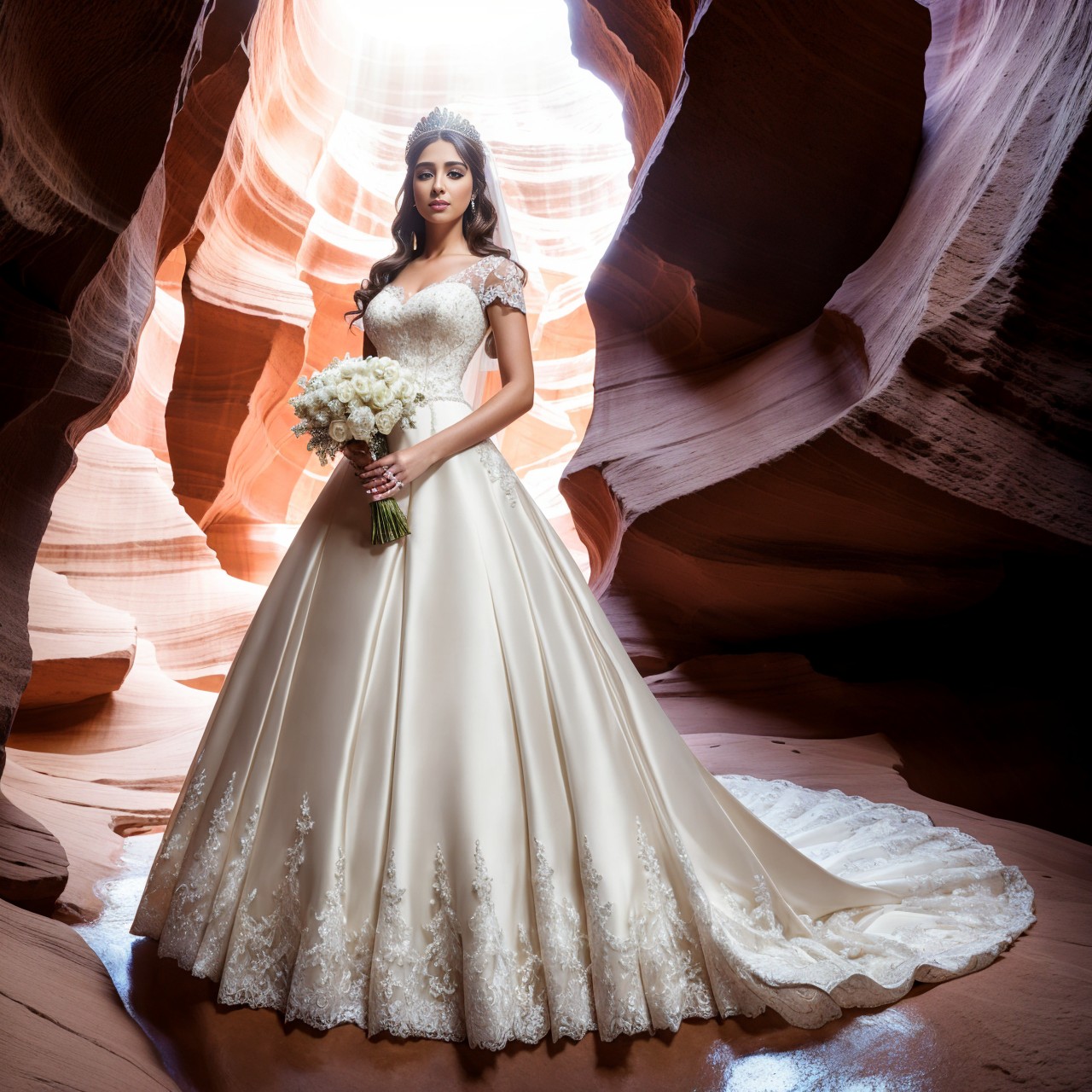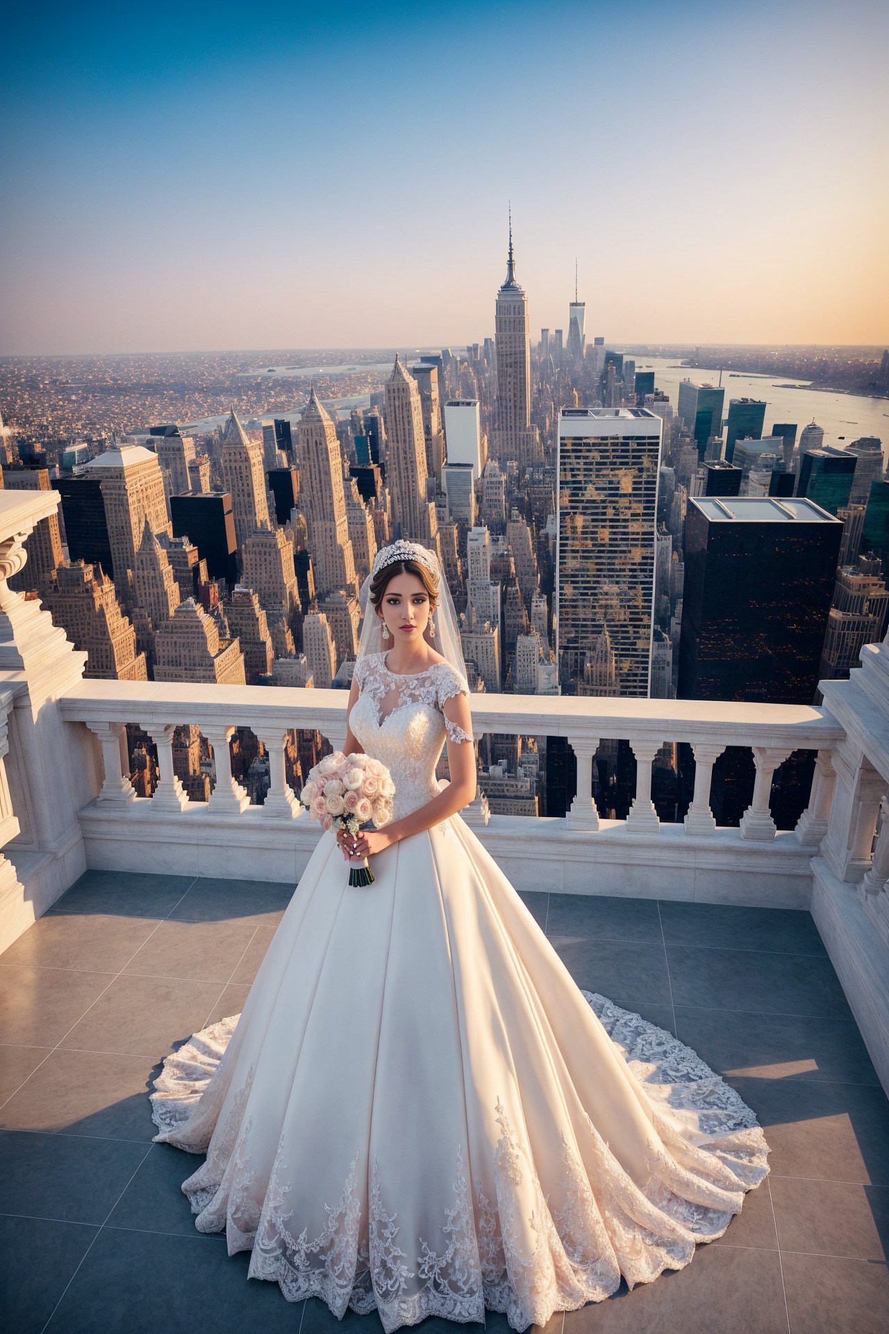masterpiece, extremely high details, realistic, best quality, high resolution, hyper-detailed, ray-tracing, sharp focus, vibrant, intricate, sharpness and clarity, depicting a bride, background of Eiffel Tower Paris, wear laced wedding dress, aesthetic dress, face details, beautiful face, in sun_rise